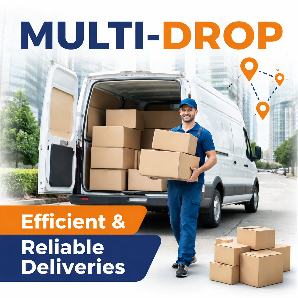 We provide Multi-Drop Delivery, 2 Man Delivery, Door to Door Delivery, and Packaging & Storage services tailored for both businesses and individuals.
